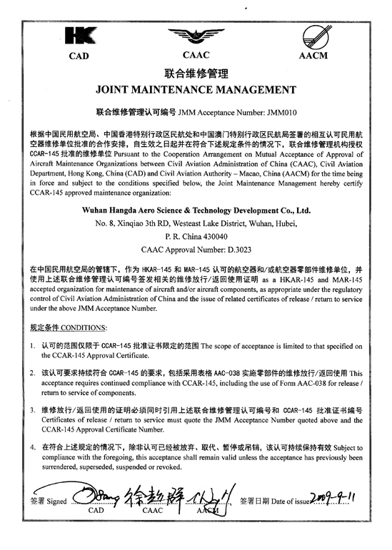 我們擁有CAAC、FAA、EASA以及多國和地區的維修資格證書